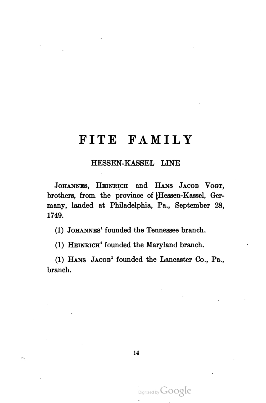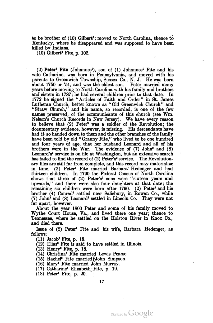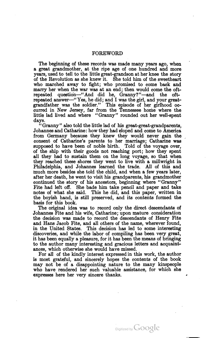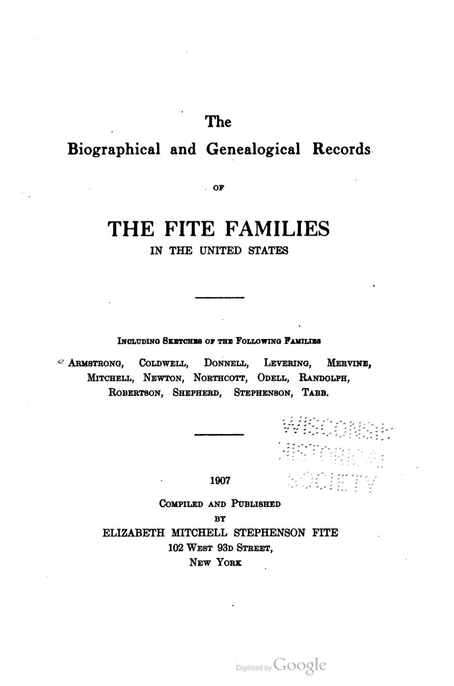 - ^ Jump up to:a b c d e Elizabeth Mitchell Stephenson Fite (1907). The biographical and genealogical records of the Fite families in the United States. The Greenwich Printing Company, New York. pp. 106–112. Retrieved 2011-03-23.