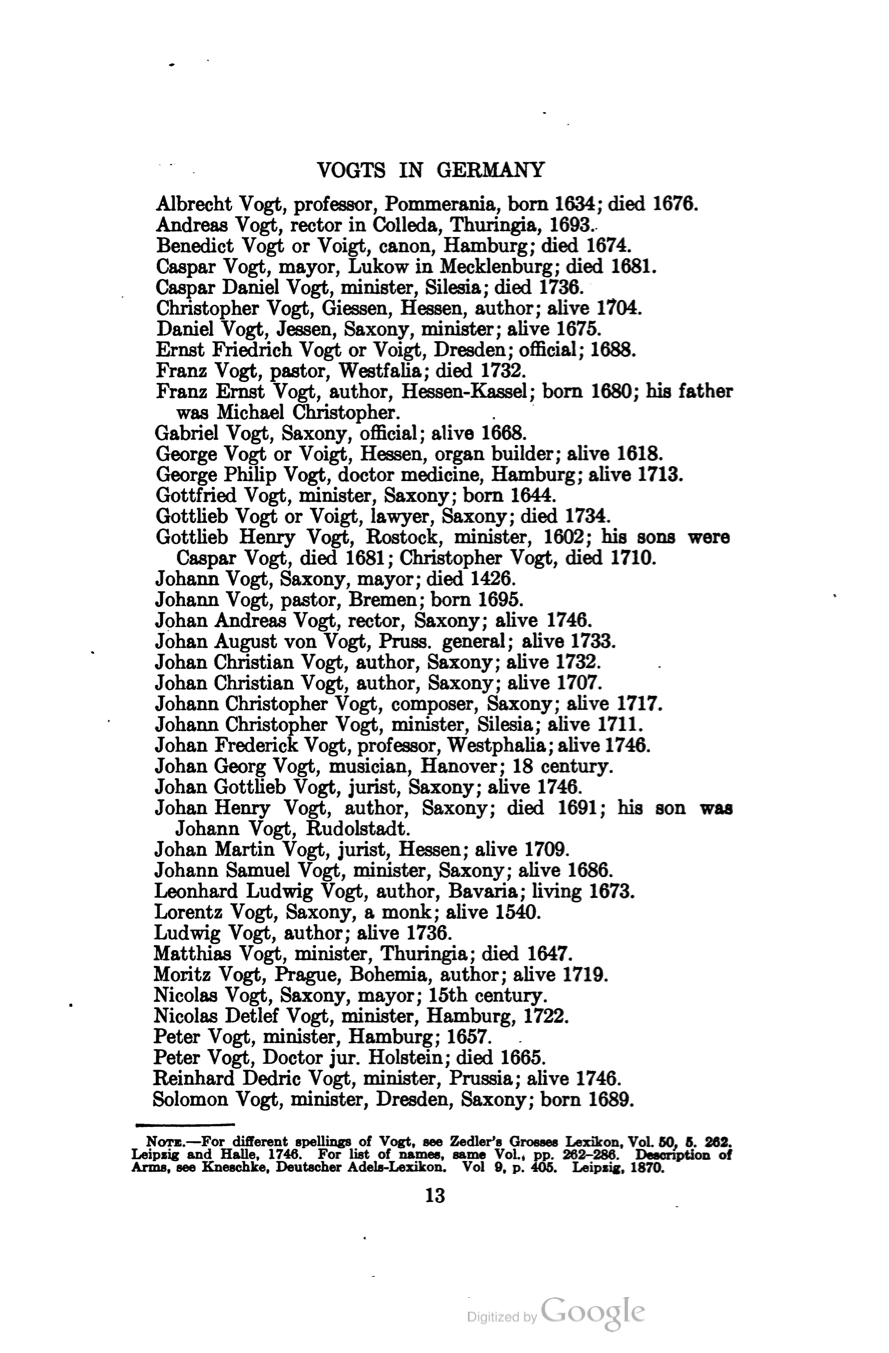 - Johannes Vogt is born and his two brothers travel to Rotterdam in 1749 to travel to America. The will leave from Rotterdam, Germany and make one stop East Cowes in the UK and then Land in Philadelphia…
